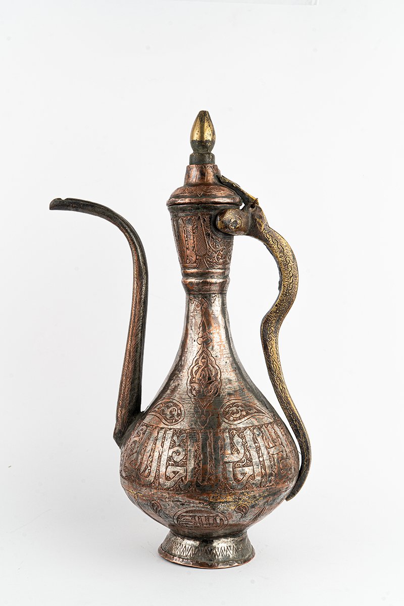 - Shoulders & Spout: The upper register is adorned with arabesque scrolls and geometric flourishes, balancing the grandeur of text with lyrical softness.
