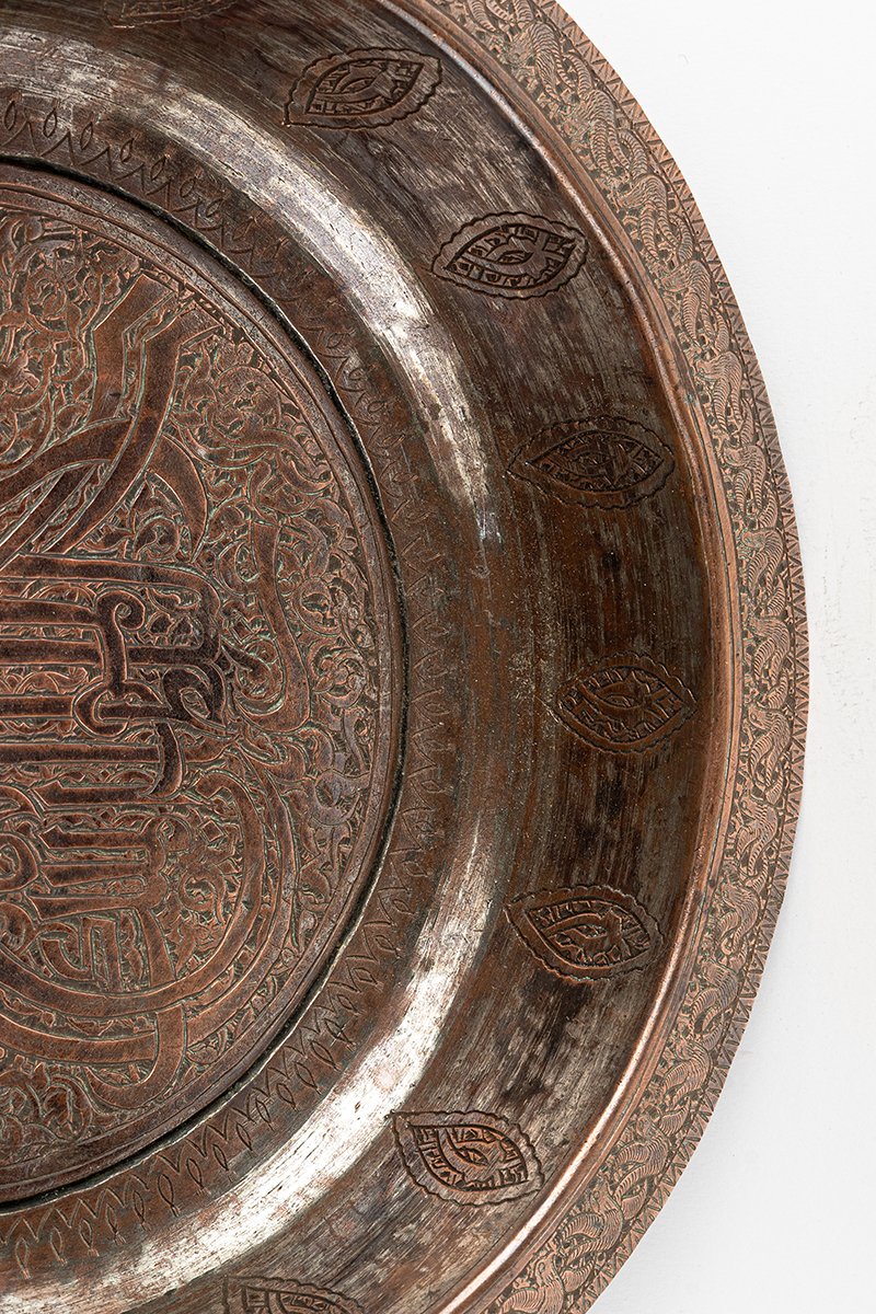 This tray is not merely functional but ceremonial and symbolic. The central tughra proclaims sovereignty; the lion embodies guardianship and majesty; the fox brings earthly wisdom; and the birds symbolize freedom and spiritual vitality. Bound together by arabesques and inscriptions, the tray becomes a visual manifesto of power, protection, and divine order in Ayyubid–Ottoman style.